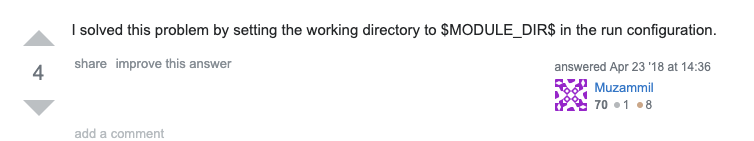 intellij에서 module 안에 웹 모듈을 실행시킬때는 working directory를 해당 모듈로 설정해줘야 한다. 그렇지 않으면 최상의 root로 working directory가 지정되기 때문이다.