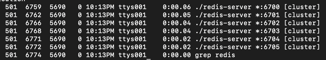 redis-cli --cluster create 127.0.0.1:6700 127.0.0.1:6701 127.0.0.1:6702 127.0.0.1:6703 127.0.0.1:6704 127.0.0.1:6705 --cluster-replicas 1