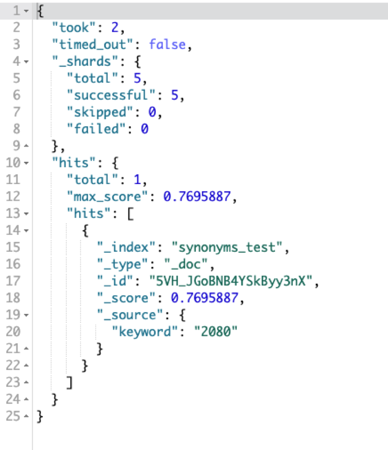 elasticsearch에서 검색기능을 넣다가 2080이라는 키워드를 검색 했을때와 이공팔공이라는 검색어를 입력했을 때 두개 모두 동일한 데이터를 출력하도록 지정하고 싶었다.