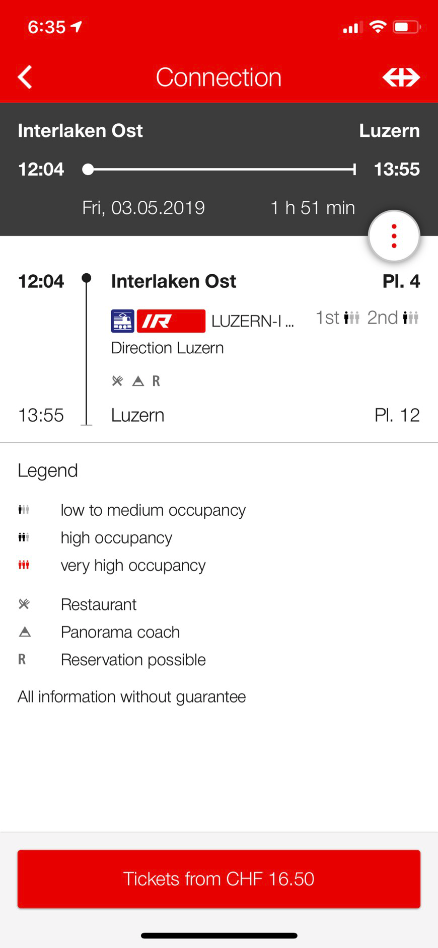 인터라켄 동역에서 루체른으로 가기위해서는 마찬가지로 SBB 어플을 사용했다. 루체른까지 한번에 가는 기차는 한시간에 한번씩 밖에 없다. 그래서 시간때를 잘 보고 선택해서 가야한다. 놓치면 또 기다려야 한다 ㅜㅜ 아니면 베른을 거쳐서 가는 방법이 있는걸로 아는데 번거롭고 시간도 오래걸리니 패스