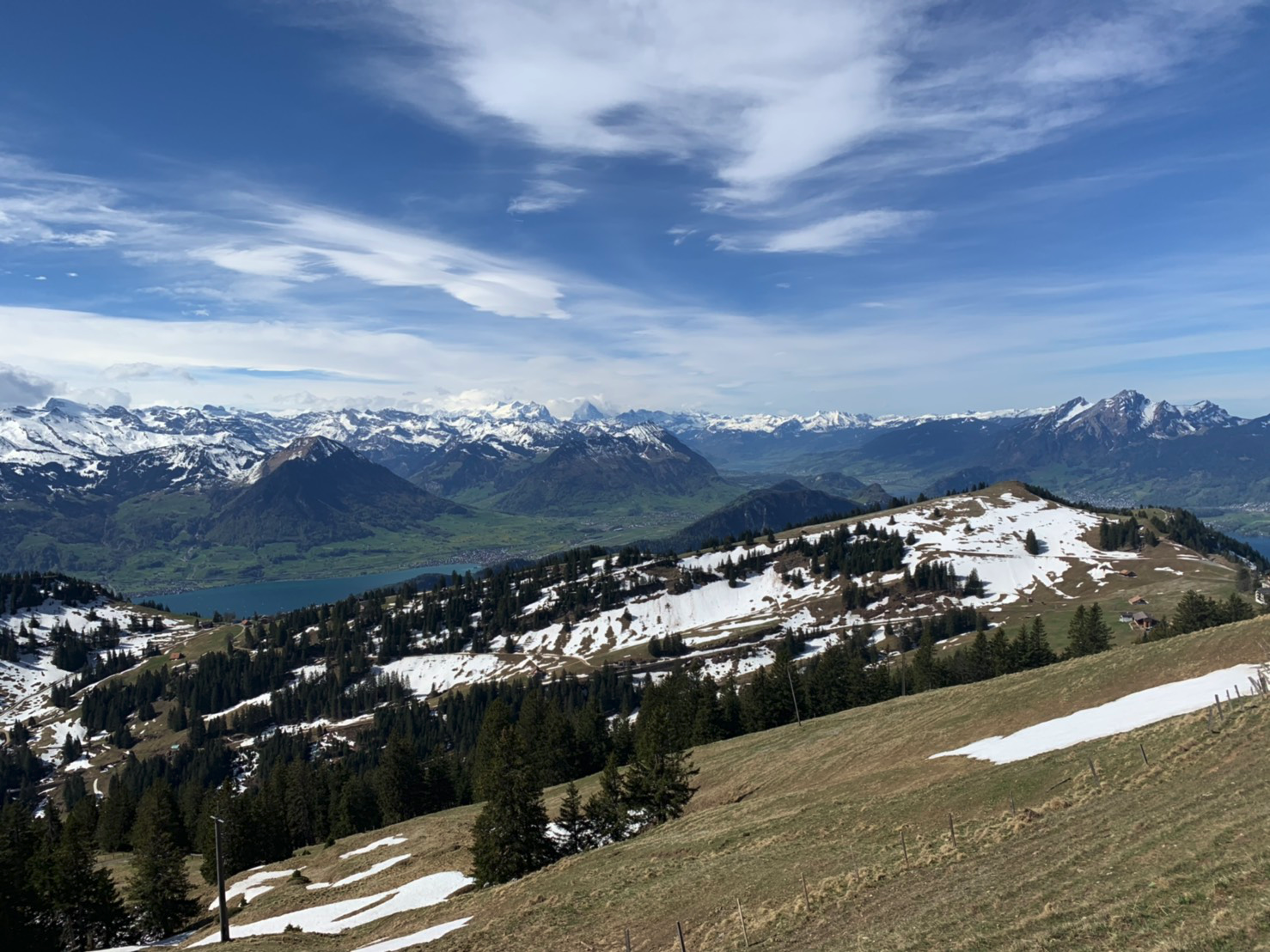 그래서 내려올때 베기스 경로로 올라했는데 바람이 많이 불어서 케이블카 운행을 안했다. 그래서 비츠나우로 갔다. 비츠나우로 가게되면 내려서 열차한번만 타면 리기산 정상 까지 간다. 기차안에서 보이는 호수 광경이 진짜 일품이다. 산으로 올라가는 방향에서 왼쪽에 앉아야 호수를 볼 수 있다. 나는 오른쪽에 앉아버렸다 ㅜ