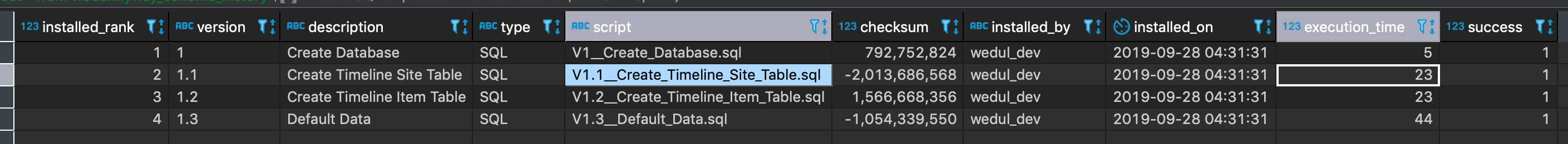 | script | 스크립트 이름 V1__kdjlkdf.sql |