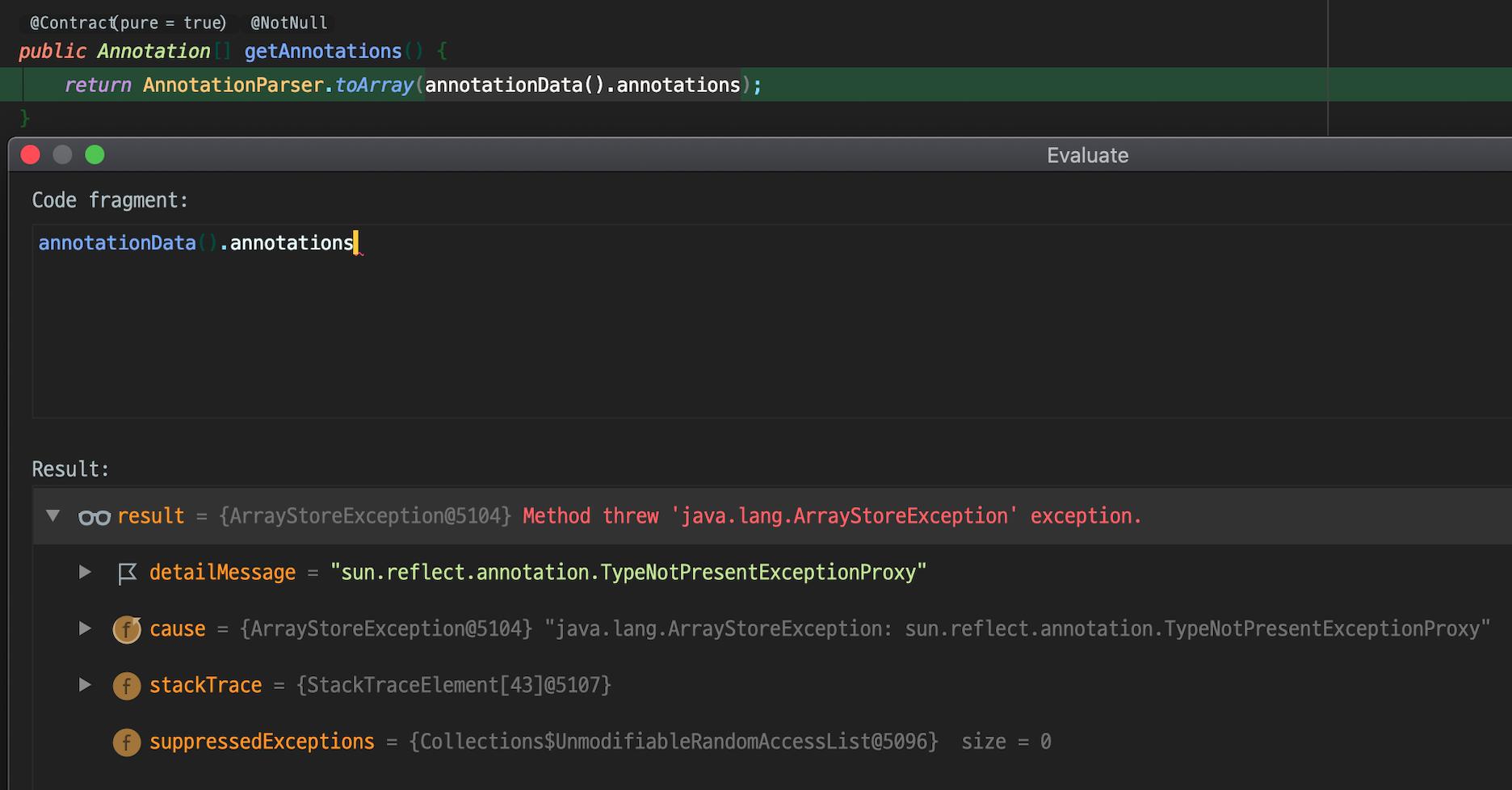 여기서 annotaion 정보를 가지고 올 때 TypeNotPresentExceptionProxy에러가 동일하게 발생한다.