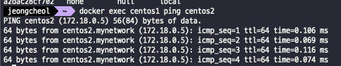 docker exec centos1 ping centos2