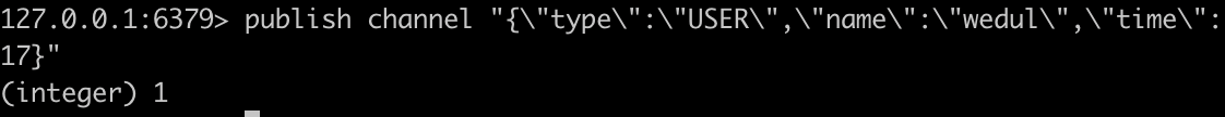 4. worker가 없어서 terminal로 redis의 channel topic에 user별 변경 된 배달 예상시간 정보를 전송한다.