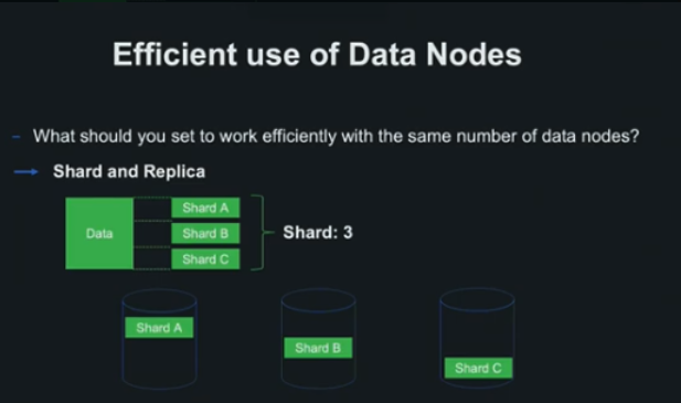 - shard도 여러곳에 분산되어있으면 한쪽 노드에 집중되는 I/O등의 문제를 분산할 수 있지만 또 각각의 샤드의 검색결과를 모아야하기 때문에 그또한 cpu에게 일을 주는 부분도 있다. (인덱싱에는 확실히 성과가 있음)