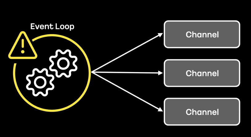 - 여러 채널을 통해서 들어온 이벤트를 event loop를 통해서 쓰레드풀 고갈없이 처리할 수 있다는 장점은 있지만 이런 문제로 blocking을 조심해야함