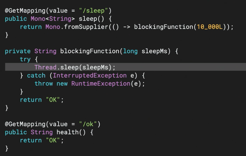 - blocking 로직이 추가된 /sleep api와 정상 응답을 주는 /ok 응답 두개로 구성