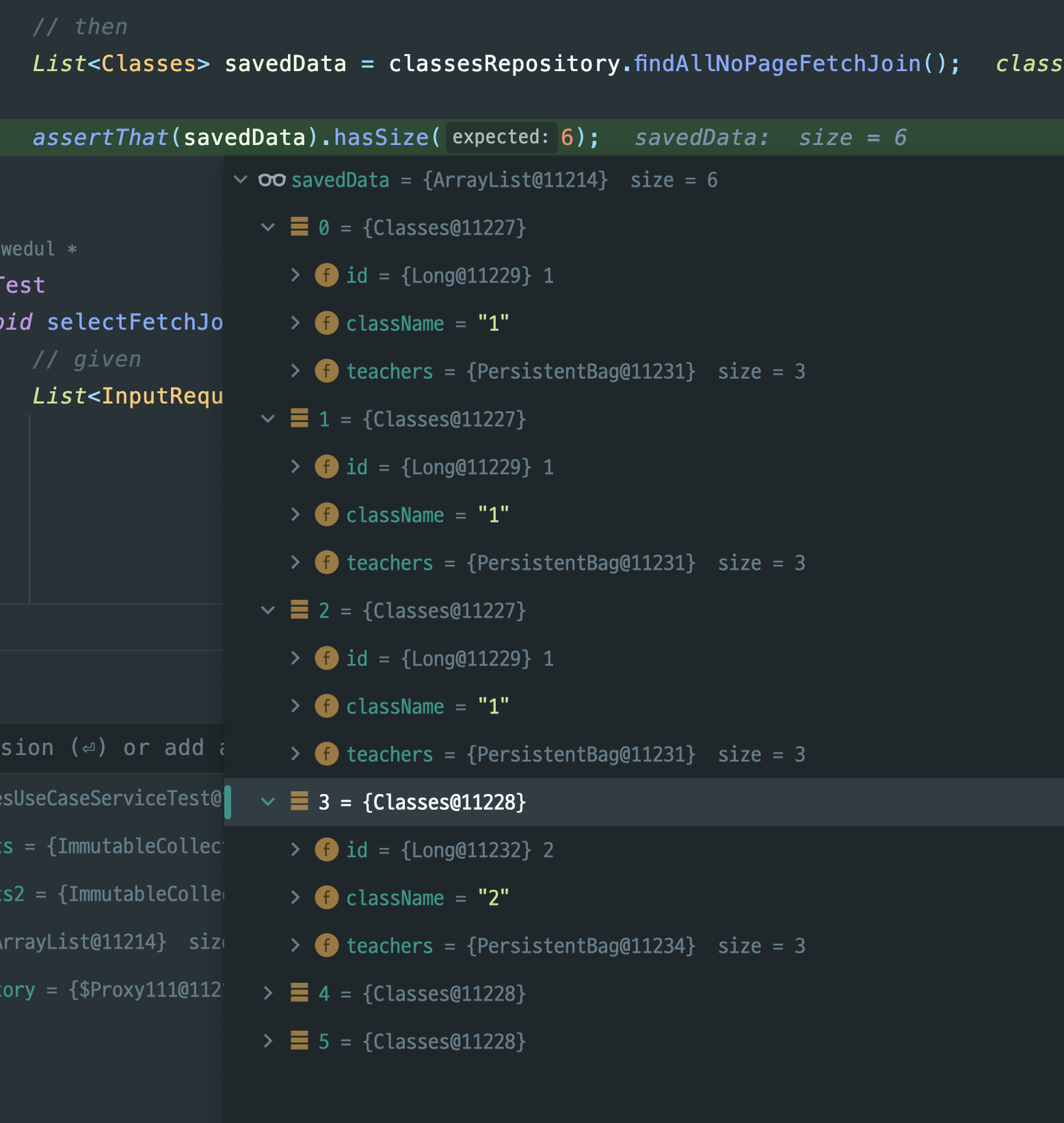 List<Classes> savedData = classesRepository.findAllPageFetchJoin(0, 10);