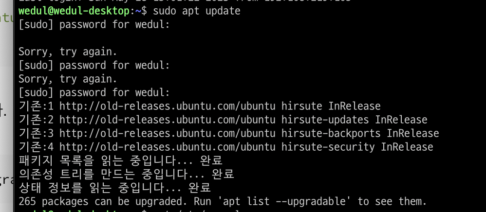 그럼 /etc/apt/sources.list를 수정하고 다시 시도해보자.