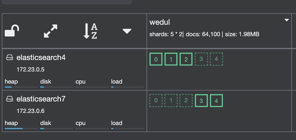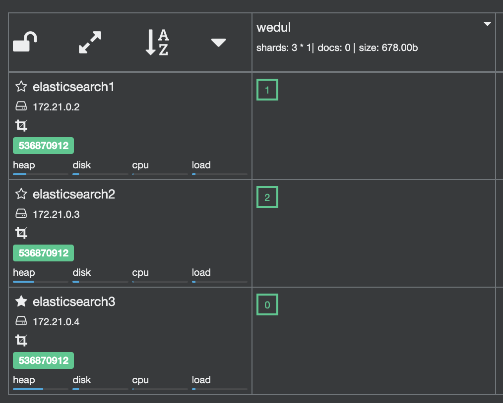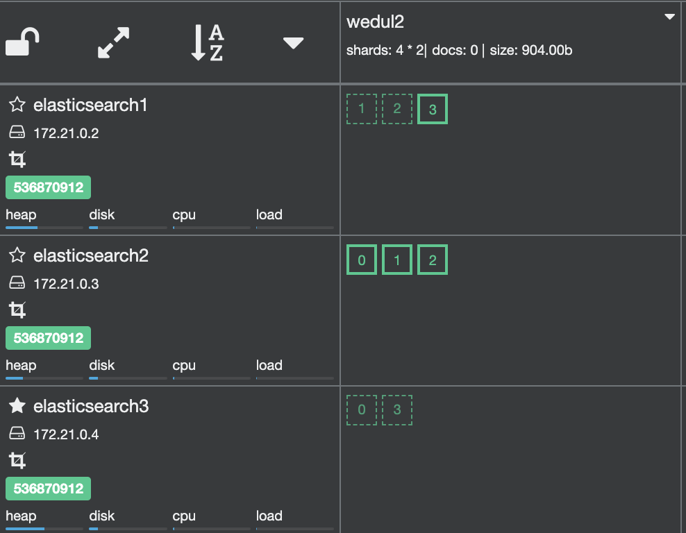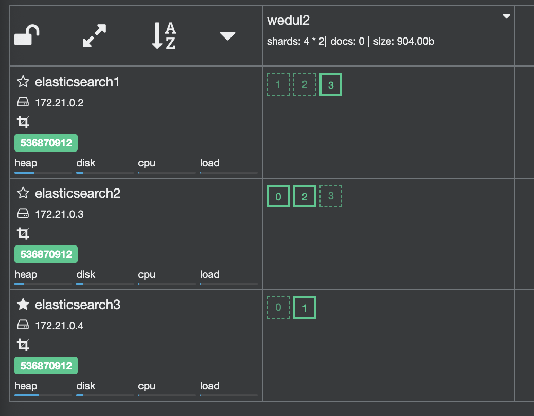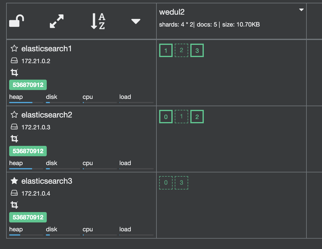 shard 0이 elasticsearch 3로 이동되고 1이 elasticsearch0으로 swap 된거를 확인할 수 있다.