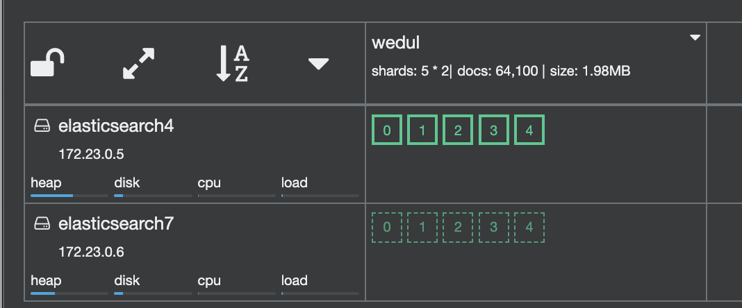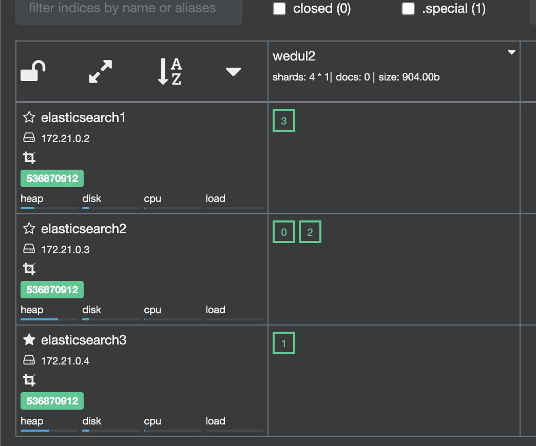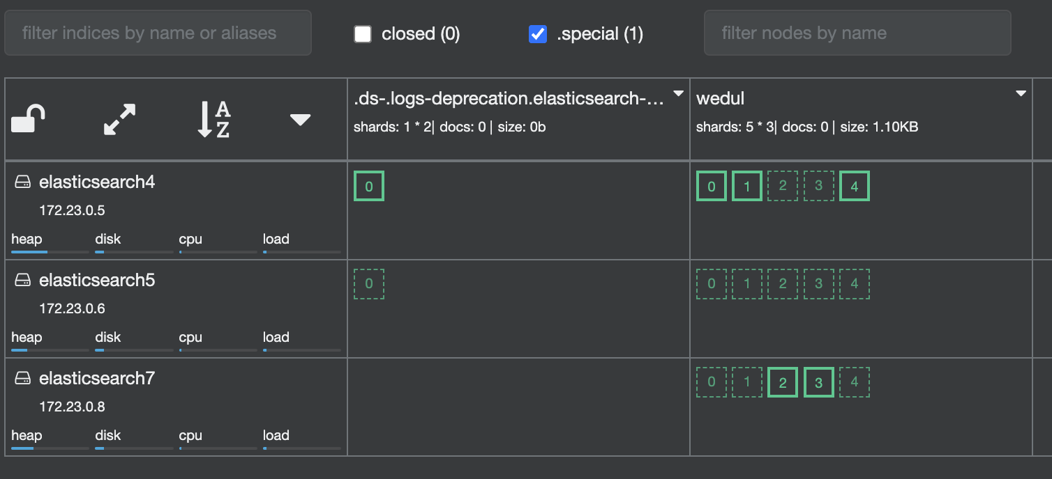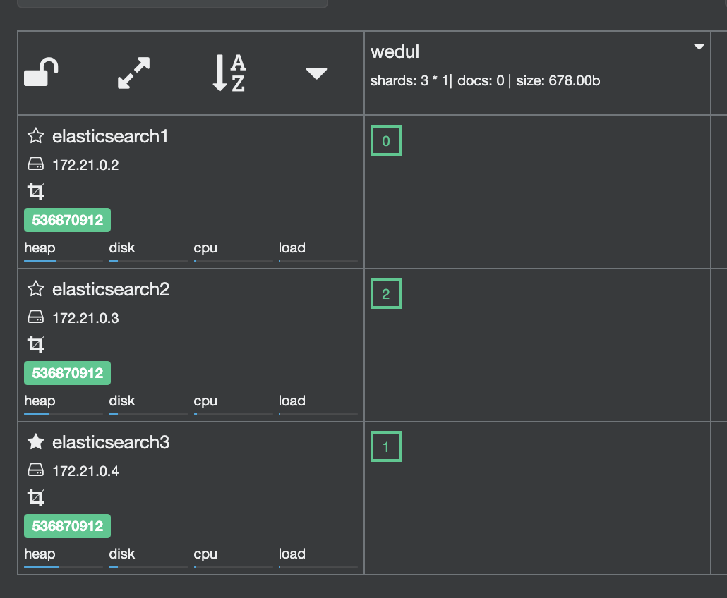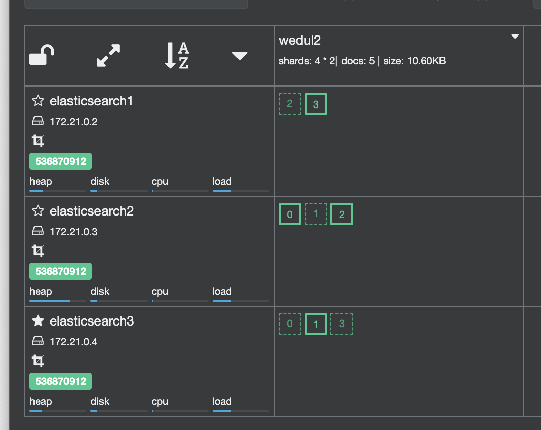 shard 0이 elasticsearch 3로 이동되고 1이 elasticsearch0으로 swap 된거를 확인할 수 있다.