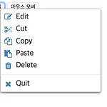 프로젝트 진행 중 contextmenu를 커스텀해서 사용하고 싶어서 검색하던 중 jquery-contextmenu를 찾았다. 생각보다 사용법도 간단하고 icon도 다양해서 소개하고자 한다. [필요사항] - jquery 1.8 이상의 버전이 필요 - jquery-contextmenu 필요 - jquery-ui의 경우 필수는 아니다. [설치방법] - npm i jquery를 사용하여 jquery를 설치한다. - npm i jquery-contextmenu 명령어를 사용하여 jquery-contextmenu를 설치한다. [적용] - 적용하고자 하는 페이지에 다운받은 js, css 파일을 임포트 한다.123456 Colored by Color Scriptercs [jquery-contextmenu 옵션 설명] ..